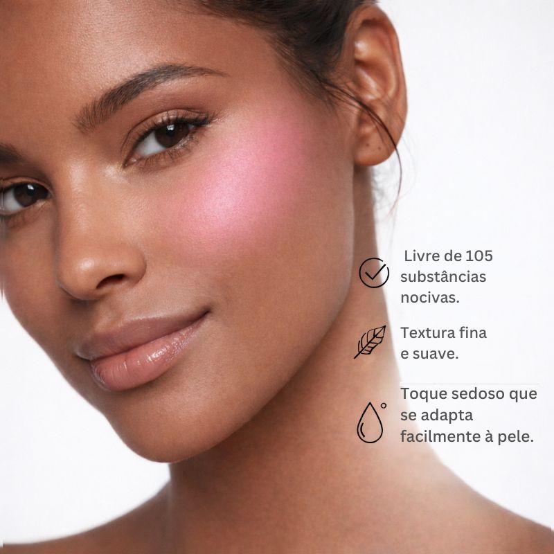 O Blush Compacto Eclat é livre de 105 substâncias potencialmente alergênicas e nocivas, oferecendo segurança dermatológica e alta tolerância. Uma excelente escolha para quem procura maquiagem hipoalergênica, com acabamento natural, conforto e beleza duradoura.