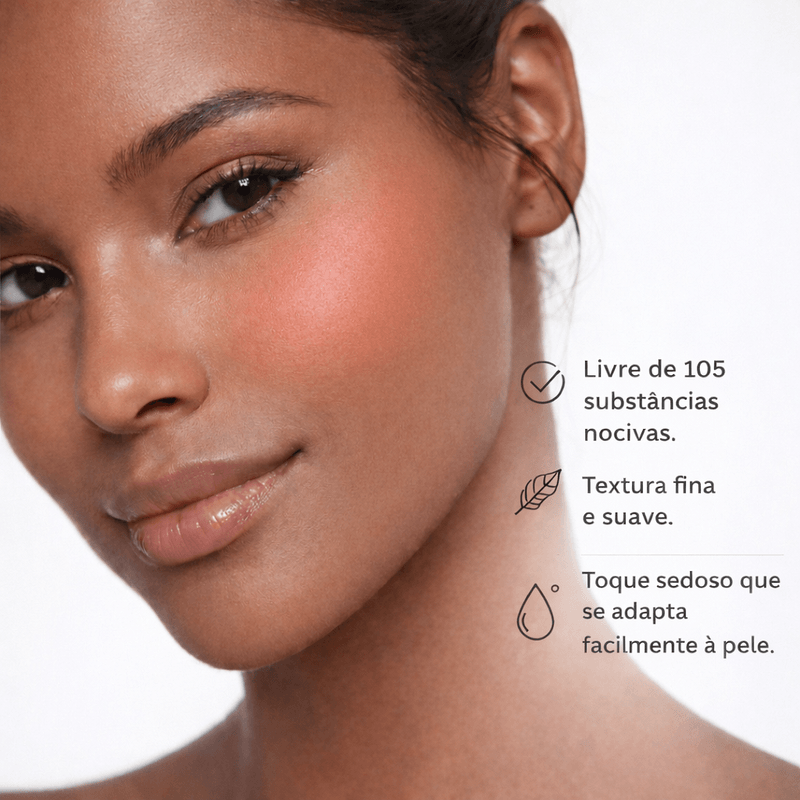 O Blush Compacto Eclat é livre de 105 substâncias potencialmente alergênicas e nocivas, oferecendo segurança dermatológica e alta tolerância. Uma excelente escolha para quem procura maquiagem hipoalergênica, com acabamento natural, conforto e beleza duradoura.