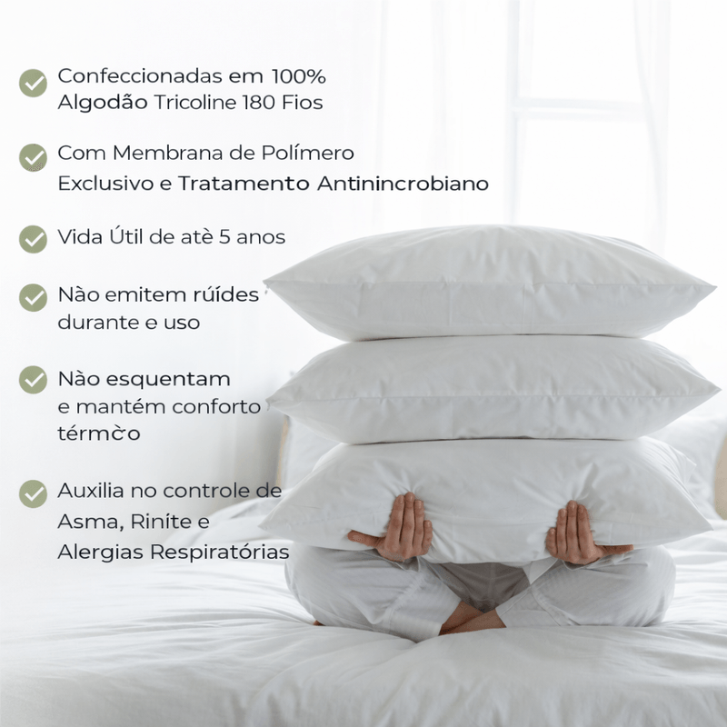 Com tratamento antiácaro fio a fio, tratamento antimicrobiano, resistência a líquidos, costura reforçada e zíper de alta qualidade, as Capas Antiácaro Super Soft Alergoshop apresentam durabilidade média de até 5 anos. São ideais para quem busca proteção completa contra alérgenos, noites mais tranquilas e mais qualidade de vida, unindo tecnologia, conforto e cuidado com a saúde.