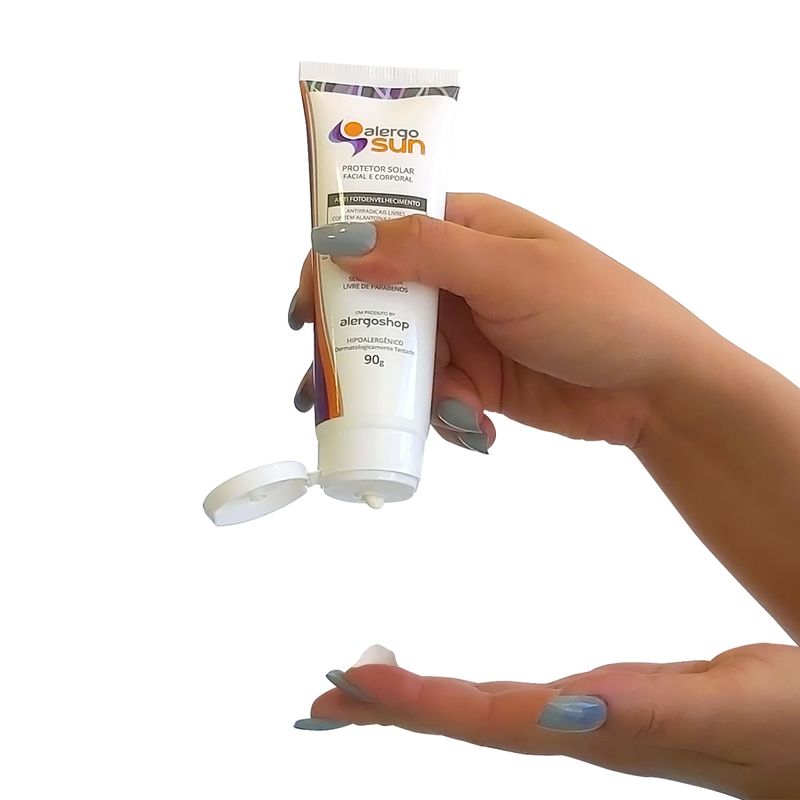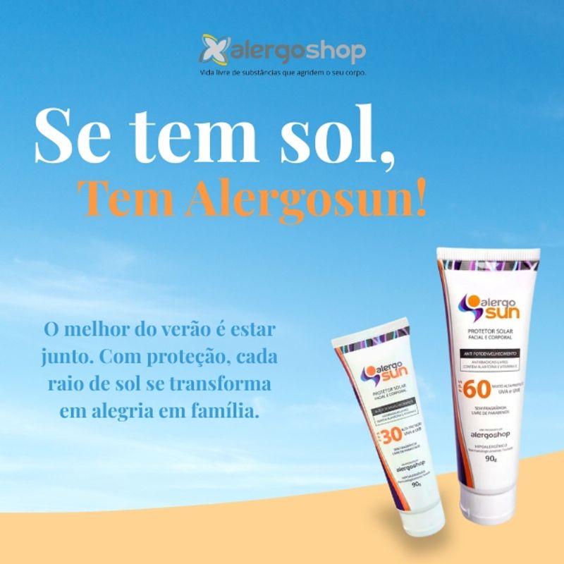 Enriquecido com Vitamina E e Alantoína, o protetor solar promove hidratação, nutrição, ação antioxidante e efeito calmante, ajudando a prevenir manchas, queimaduras solares e o envelhecimento precoce da pele. Com toque sedoso, fácil espalhabilidade e sensação confortável, o Alergosun FPS 60 garante proteção confiável, conforto diário e cuidado completo para toda a família.